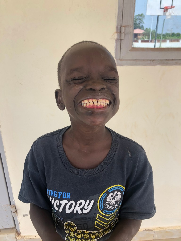 He is still there today. He continues to grow and learn each day as they care for him and challenge him to go beyond what he can currently do. They continue to help him learn to wash clothes and dishes, he dresses himself and plays soccer. He also attends school and is learning slowly how to write. He helps in the garden and loves to play with the kids and eat. When I return to Uganda end of July I am hoping to be able to see him. He is around 9 hours away from where we stay in Gulu so it isn’t so easy to just pop in for a visit. But hoping to see him soon.